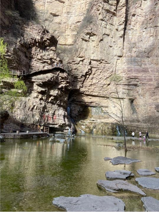27日早上在公司集合后,大家乘坐大巴車經(jīng)過三個(gè)小時(shí)的行程,到達(dá)了太行大峽谷景區(qū)。入住酒店及午餐后,首先游覽了有太行魂之稱的王相巖景區(qū)。王相巖景區(qū)唐以來,享有盛名,景區(qū)東臨溪水,西依懸崖,左右兩側(cè)峭壁環(huán)繞,形成了一個(gè)閉合性極強(qiáng)的圍谷,暗合中國古代風(fēng)水學(xué)“左青龍、右白虎、前朱雀、后玄武”的理想模式,吸引了歷代名人雅士來此修身隱居。在攀爬過程中,陡峭、曲徑隨處可見。大家一方面驚嘆大自然的巧奪天工,一方面感受大自然的美。